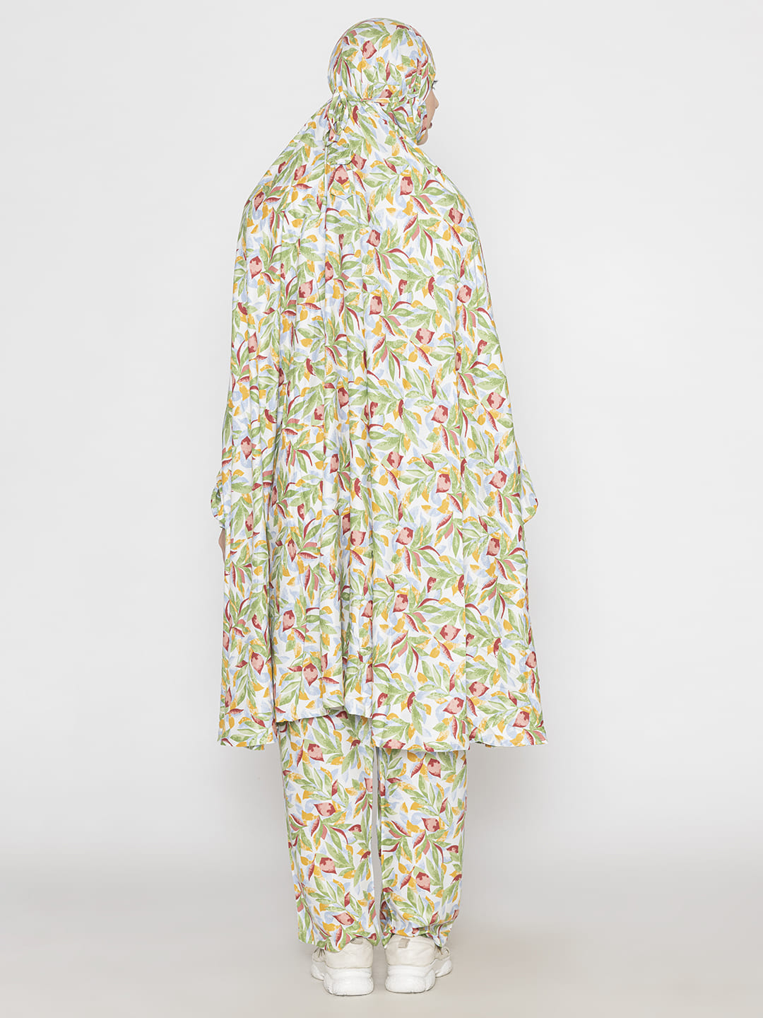 Wear artistry in every fold with this Leaf Print Co-ord Set Green Crimson. This two-piece set comes with elasticated sleeves and a Pajama.