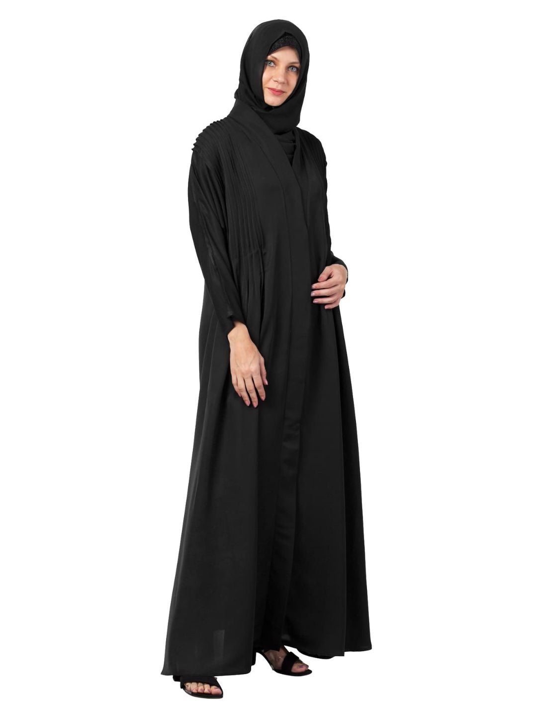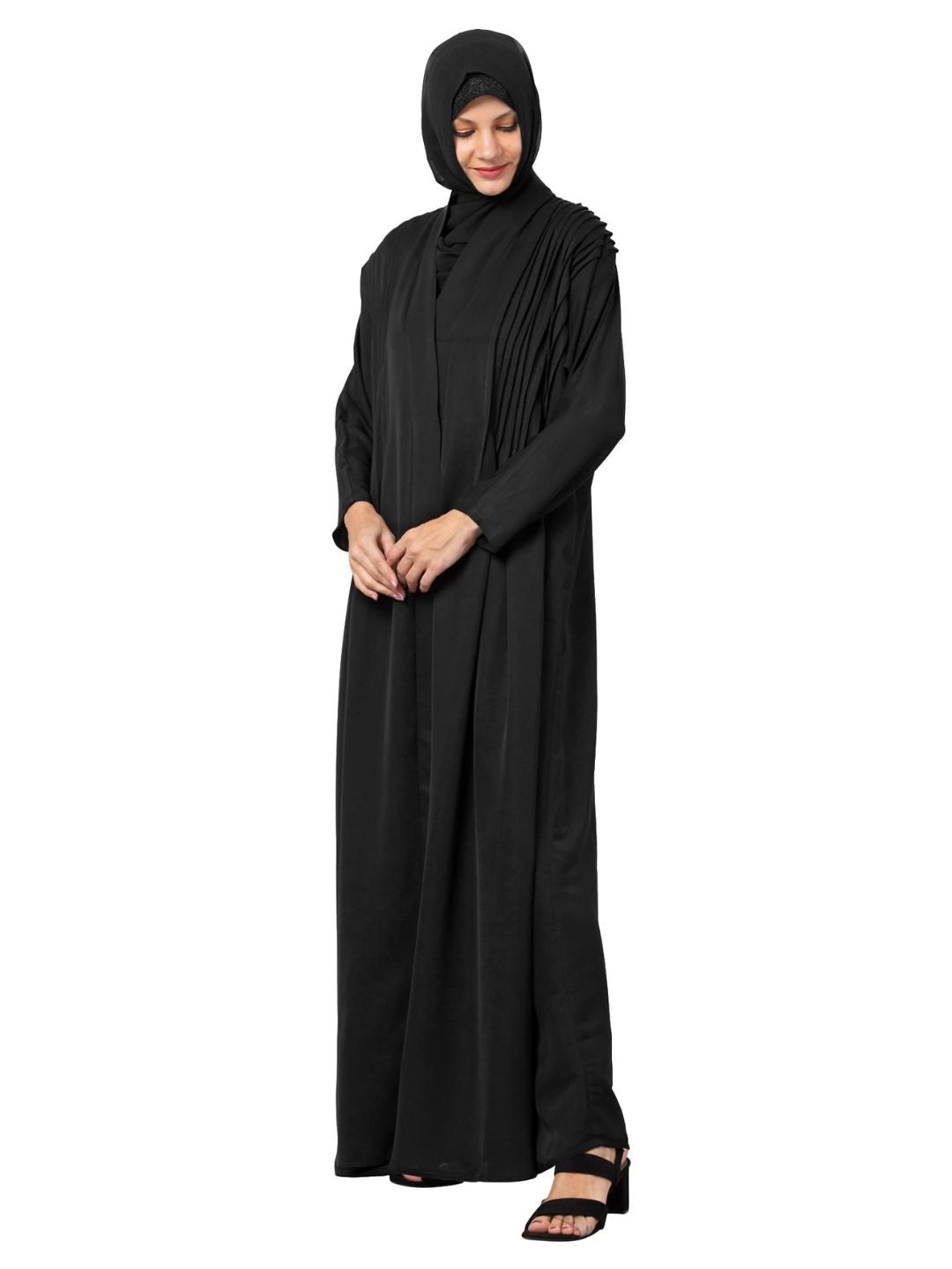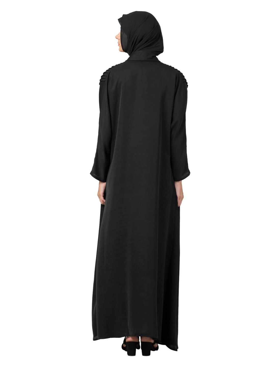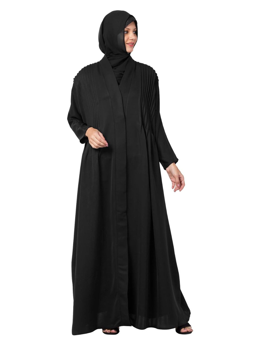 Pintuck Flare Abaya Black
