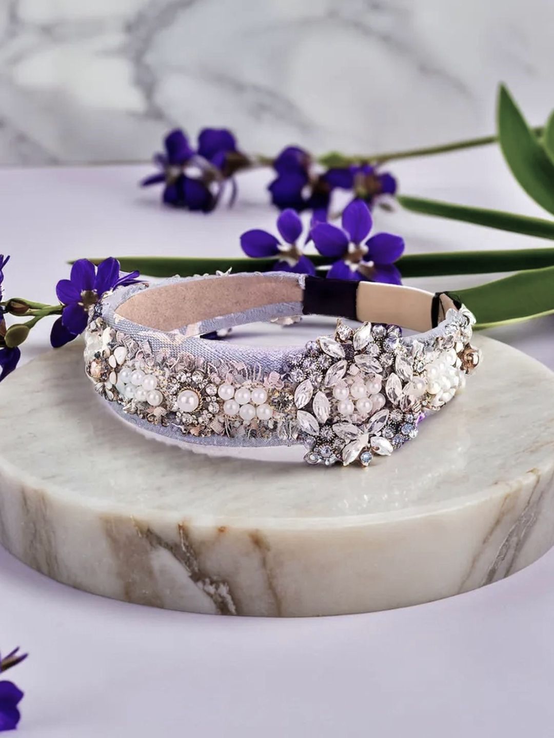 Elevate your modest style with the Rose Pearl Headband Blue. Crafted from soft, firm materials, it perfectly blends comfort and style. The headband adds a touch of elegance, creating a serene atmosphere for your moments of modest style. Material: Fabric, pearls, and stones. Our Headbands come in only One Size.