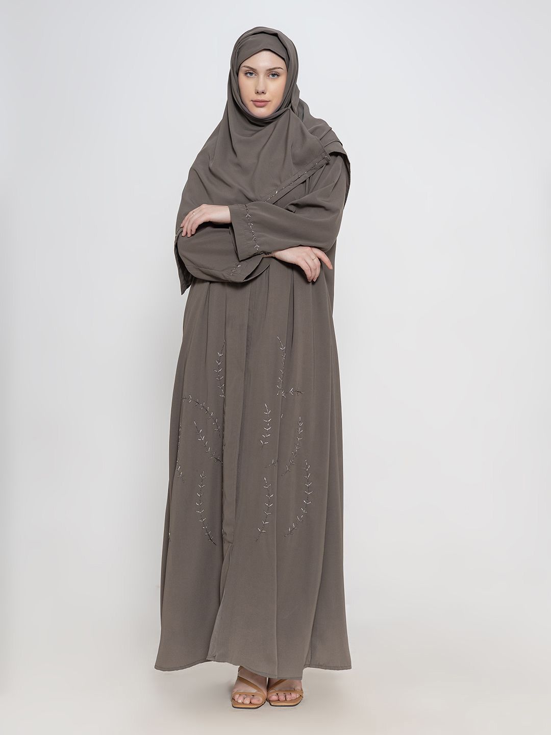 Enhance your modest wardrobe with the elegant SANASH Collection Abaya With Scarf Crafted from high-quality 100% Crush Abaya Fabric, this Abaya With Scarf ensures both comfort and durability The soft and breathable material is perfect for all-day wear, keeping you stylish and at ease Adorned with exquisite 100% polyester golden Dabka handwork embroidery, this abaya exudes elegance and sophistication The intricate detailing along the sleeves, front panels, and scarf adds a touch of traditional craftsmanship, elevating its aesthetic appeal Perfect for casual outings, evening gatherings, or daily wear, this SANASH Collections Scarf blends modesty with contemporary style, making it a versatile choice for any occasion.